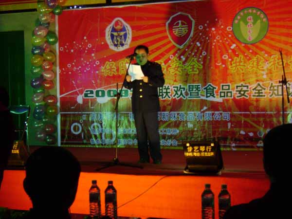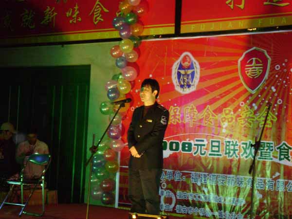 會上,城北工商所所長肖煥勤、質(zhì)量技術(shù)監(jiān)督局所長陳如春、新味公司總經(jīng)理黃細忠分別致辭,為食品安全的宣傳和落實打下決心,祝到會的嘉賓和新味公司的全體員工新年快樂,并恭祝福安市新味食品的明天越來越美好,在新的一年有新的篇章。