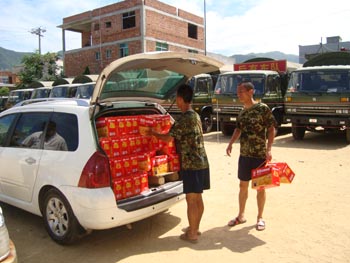 2008年7月18日,新味公司總經(jīng)理黃細(xì)忠與公司數(shù)名員工走訪霞莆某駐軍部隊(duì),并攜帶價(jià)值1萬元人民幣的新味公司生產(chǎn)的新味牌純凈水和糕點(diǎn)用于改善該駐軍部隊(duì)官兵的生活。向仍在夏日的烈日下操作的全體部隊(duì)官兵致以親切的慰問和崇高的敬意。瑾代表新味公司對(duì)祖國部隊(duì)的擁護(hù),對(duì)部隊(duì)官兵的關(guān)心,感謝部隊(duì)對(duì)社會(huì)做出的貢獻(xiàn)。
