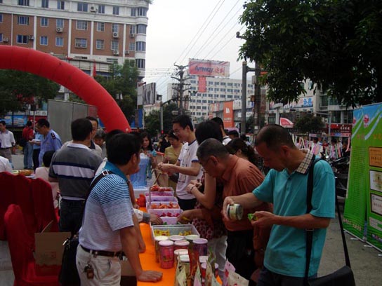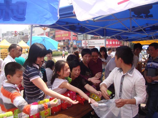 我公司參加<<食品安全法>>實(shí)施一周年宣傳活動(dòng)!活動(dòng)期間我公司免費(fèi)發(fā)送飲用水贈(zèng)飲卷、茶香蜜餞等產(chǎn)品。受到廣大群眾的認(rèn)可!