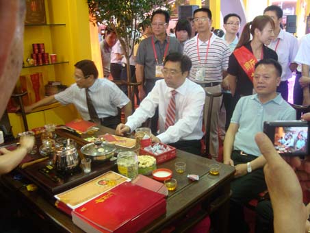 2011年6月16日寧德“投洽會”新味館前寧德市委書記陳榮凱、福安市委書記李轉(zhuǎn)生、市長楊培欽光臨品嘗“新味茶食”并給予充分的肯定和建議,公司所帶的產(chǎn)品被顧客搶購一空并與多家經(jīng)銷商和大型茶企簽訂了合作意向和加盟協(xié)議。